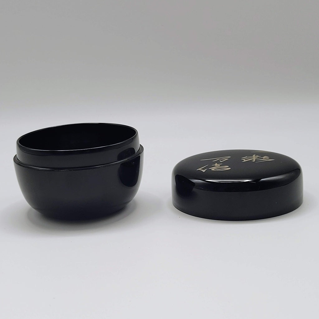 Deze verfijnde natsume is bedoeld voor usucha (dunne matcha) en toont de balans tussen eenvoud en symboliek. De diepzwarte lak straalt rust en sereniteit uit, terwijl de gouden maki-e-decoratie subtiel glanst in het licht. Op het deksel staat in sierlijke kalligrafie de spreuk 「粒万倍」(ichiryū manbai – “Één korrel kan zich vermenigvuldigen tot tienduizend”). Het idee komt uit een Japans gezegde dat benadrukt dat een klein begin kan leiden tot grote opbrengst of succes, een traditionele Japanse wens voor voorspoed en groei. Aan de binnenzijde van het deksel zijn negen rijstkorrels in goud afgebeeld, een verwijzing naar de oogst en de overvloed die uit één enkel zaad kan voortkomen.