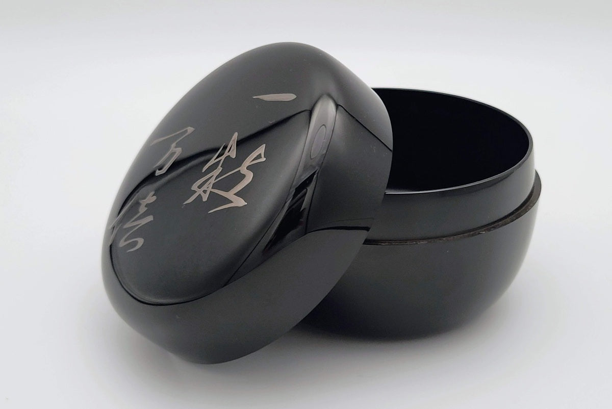 Deze verfijnde natsume is bedoeld voor usucha (dunne matcha) en toont de balans tussen eenvoud en symboliek. De diepzwarte lak straalt rust en sereniteit uit, terwijl de gouden maki-e-decoratie subtiel glanst in het licht. Op het deksel staat in sierlijke kalligrafie de spreuk 「粒万倍」(ichiryū manbai – “Één korrel kan zich vermenigvuldigen tot tienduizend”). Het idee komt uit een Japans gezegde dat benadrukt dat een klein begin kan leiden tot grote opbrengst of succes, een traditionele Japanse wens voor voorspoed en groei. Aan de binnenzijde van het deksel zijn negen rijstkorrels in goud afgebeeld, een verwijzing naar de oogst en de overvloed die uit één enkel zaad kan voortkomen.