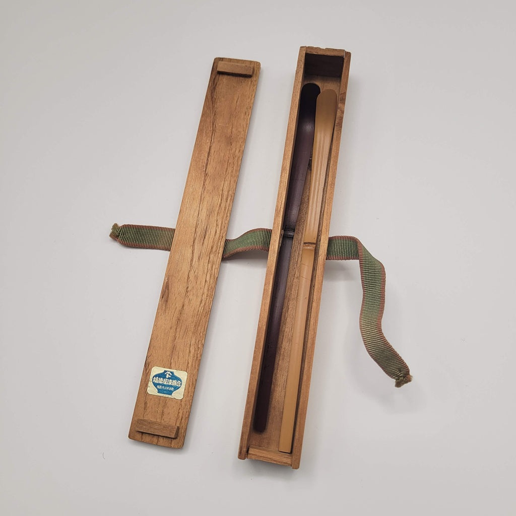 Met zijn zachte patina en subtiele gebruikssporen draagt deze set de sfeer van tijd en aandacht in zich. Het is een object dat zowel ceremonieel gebruikt kan worden als een waardevolle aanvulling vormt voor verzamelaars van Japanse theeceremonie-kunst. Binnen de theeceremonie symboliseert de chashaku precisie en aandacht een klein instrument dat de overgang markeert van stilte naar smaak.